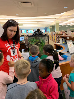 We found where the new books are. We found out where the computer are.We met Arlo. Some of us think Arlo is a lizard. Some of us think Arlo is a gecko. You'll have to go back to the library to find out who is correct.